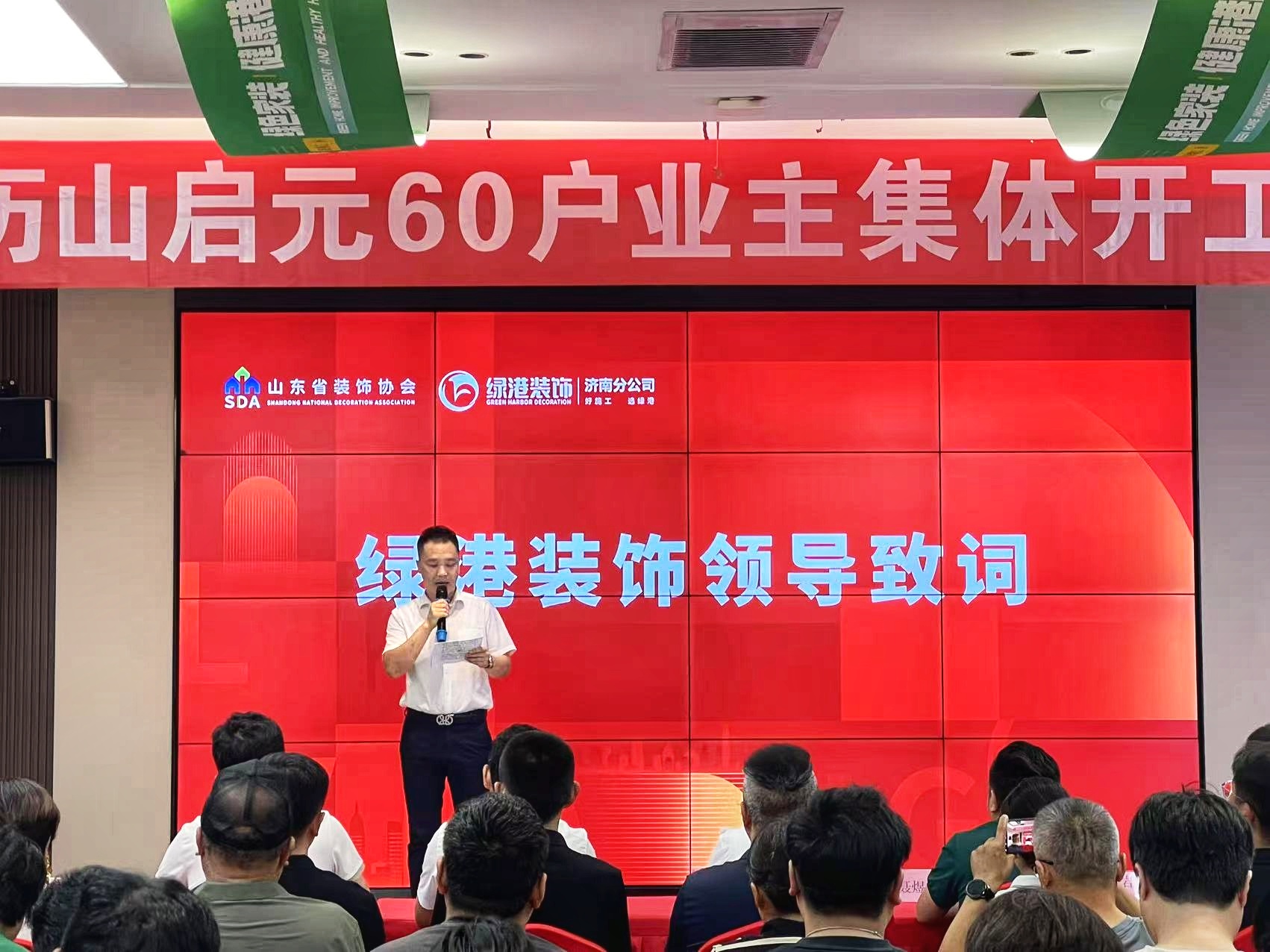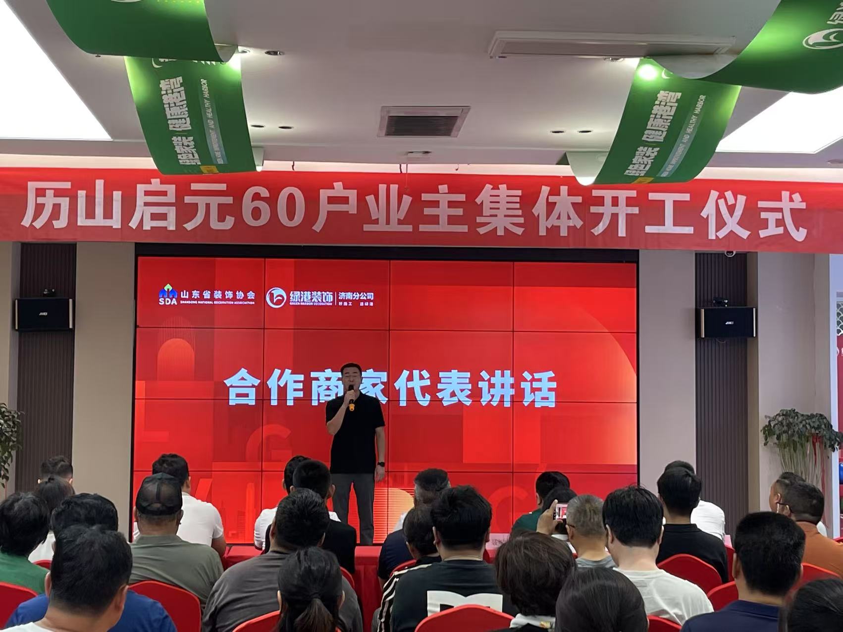 绿港装饰领导在致词中表示牛来乐,绿港装饰一直致力于为客户打造环保健康高品质的家居空间,此次借助家装厨卫焕新季的契机,将推出一系列优惠活动和创新产品,回馈广大消费者的支持与信任。本次历山启元小区60户业主集体开工仪式的举行,也是绿港装饰经过诚信经营,完美的设计,合理价格,获得的客户认可,我们一定会继续努力,做好每一户的交付工作,匠心筑家。