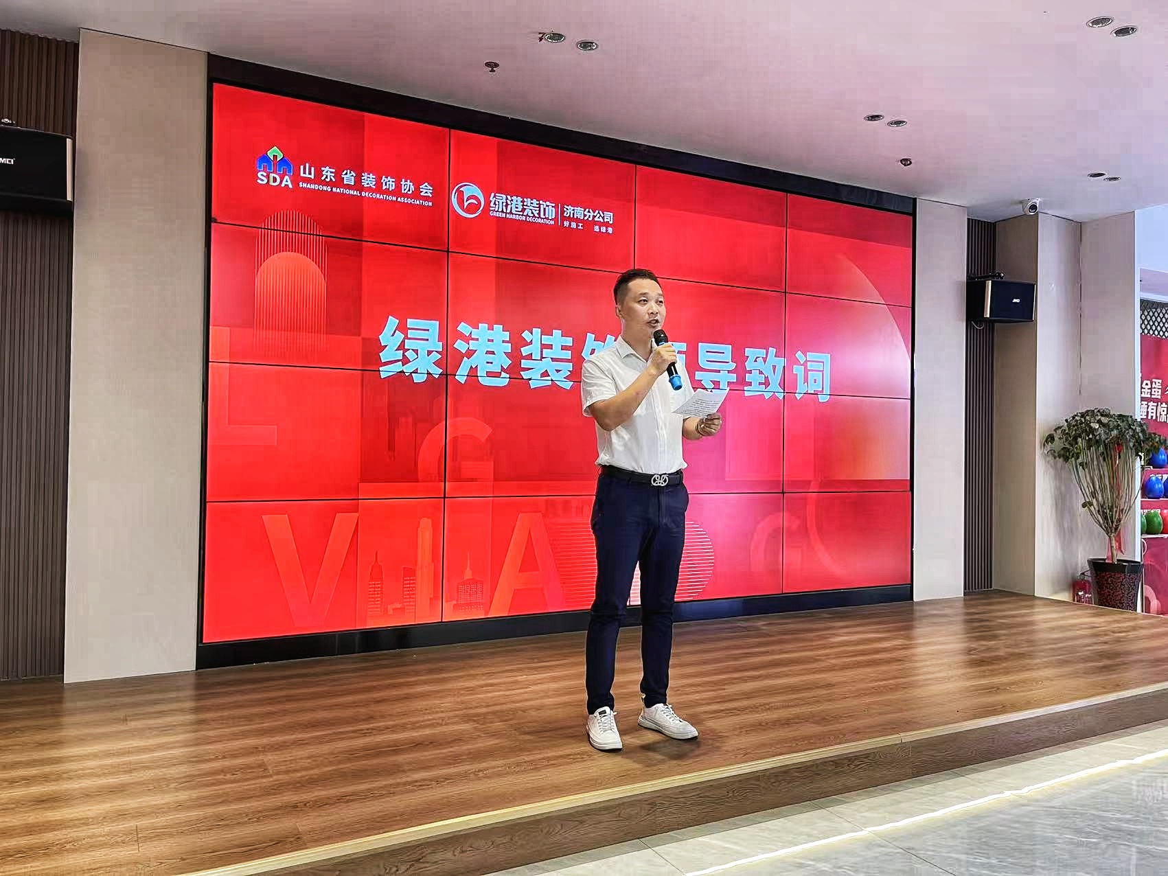 活动伊始,山东省装饰协会执行会长兼秘书长杨雯雯发表致辞。她表示,绿港装饰凭借其专业的设计团队、精湛的施工工艺和完善的售后服务,一定能够为业主们打造出理想中的家园。希望通过此次活动,积极为企业搭建交流合作的平台,让更多消费者享受家装厨卫焕新的政策红利,助力山东省装饰行业持续健康发展。