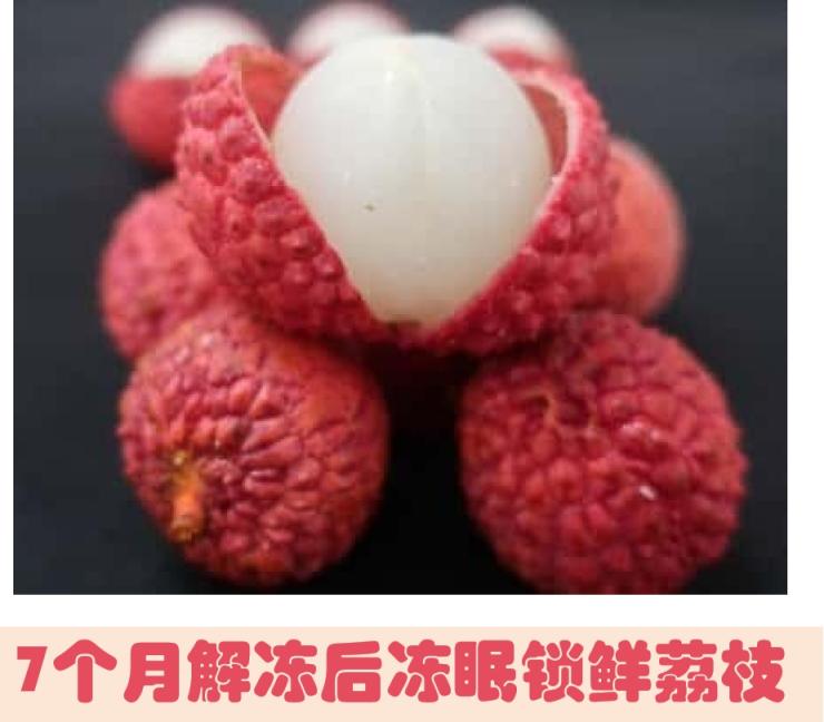 冻眠过程包括“快速预冷—真空包装—精准速冻—低温储藏”4个环节,每一环都需精确控制。研究表明,冻眠荔枝解冻后仍能保留80%以上的原始营养与风味,果皮色泽红润,果肉晶莹脆嫩,显著优于普通冷藏样本。冻眠技术的成功,也意味着荔枝商品期可从3-5天延长至10个月以上。